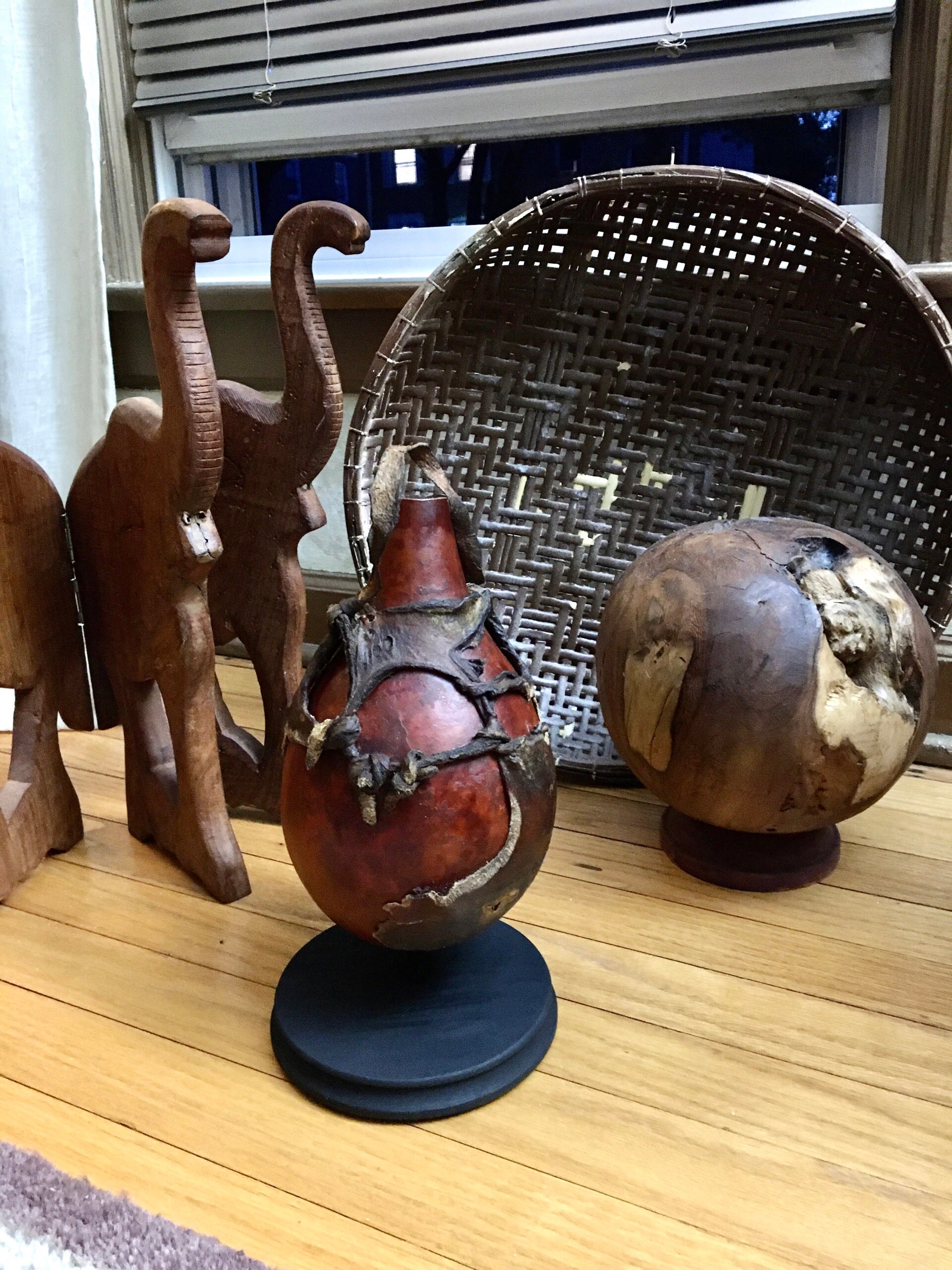 This Old Etched Burnished Milk Gourd comes from the Pokot tribal people of Kenya. Most Pokot art is associated with body ornamentation, including bead work and intricate coiffures and wigs that are worn by young men to signal their membership in a given age-grade. Other forms of art are richly burnished gourds which are milk containers used by women for storage. The Pokot have a very unusual dairy product that has been produced by village communities for generations. This product is a yogurt made of cow’s or goat’s milk, mixed with the ashes of the native cromwo tree. It is still prepared today by fermenting the milk inside dried hollow gourds, then adding the ash to give it an aromatic flavor and its unusual light grey color, and is often eaten together with a thick millet porridge. Tribal Milk Gourds are so unique and beautiful as home decor or given as a gift to a man or a woman, or to add to your collection.