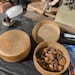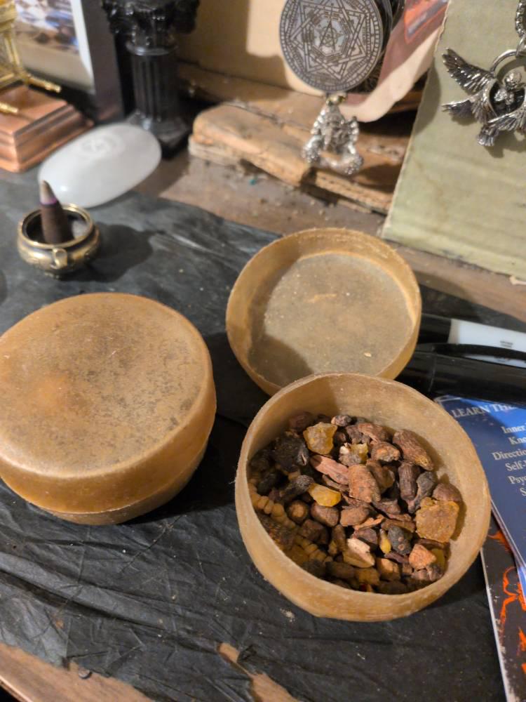 This wonderful Leather Box from Burkina Faso in Africa, that is filled with Frankincense & Myrrh. The Gourd emits a wonderful scent. Both frankincense and myrrh are derived from the gummy sap that oozes out of the Boswellia and Commiphora trees, respectively, when their bark is cut. They are also extremely fragrant, particularly when burned, with frankincense giving off a sweet, citrus scent and myrrh producing a piney, bitter odor. A wonderful gift or to adorn your home.