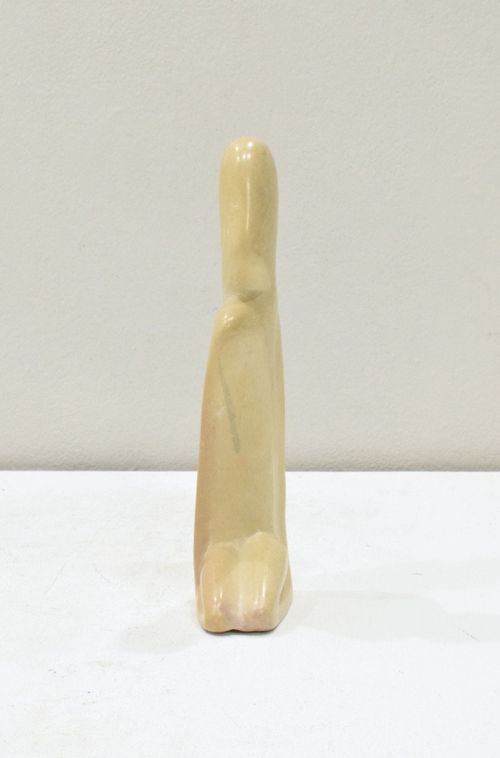 This is a lovely African Soapstone Abstract Large Kneeling Man from Kenya. The stone is named after the Kisii people of the Tabaka Hills in western Kenya and the only place it is found in the region. The soapstone is a metamorphic rock that consists of the mineral talc. Also commonly referred to as steatite, it is known for being soft and easy to work with. While the stone was primarily used for domestic purposes such as basketry and pottery, it is now used to create unique handmade carvings. This would be a wonderful sculpture to adorn or home or collection.