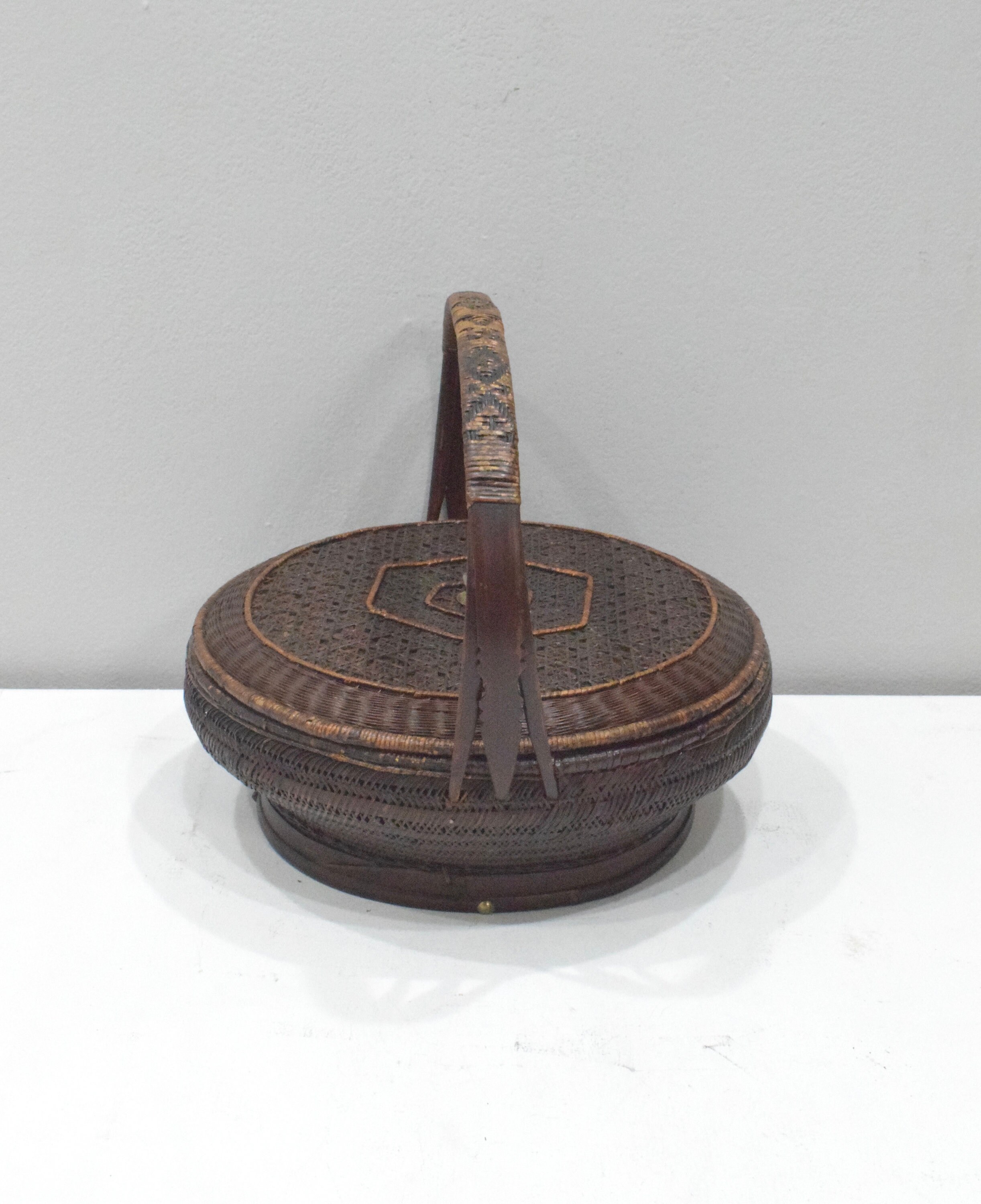 This intricately designed Chinese antique rattan basket is sure to add a touch of elegance to any decor. Crafted from high-quality wood, this lidded basket features a delicate multi-color pattern that highlights the meticulous attention to detail put into its creation. Its post-1940 age and Asian origin add to its unique appeal, making it a perfect piece to display in any antique collection or as a decorative storage option. With its sturdy construction and exquisite design, this basket is a versatile addition to any home or office. Whether used for storage or as an eye-catching decorative element, this antique rattan basket is sure to impress. Add it to your collection today to experience its timeless beauty and functionality.