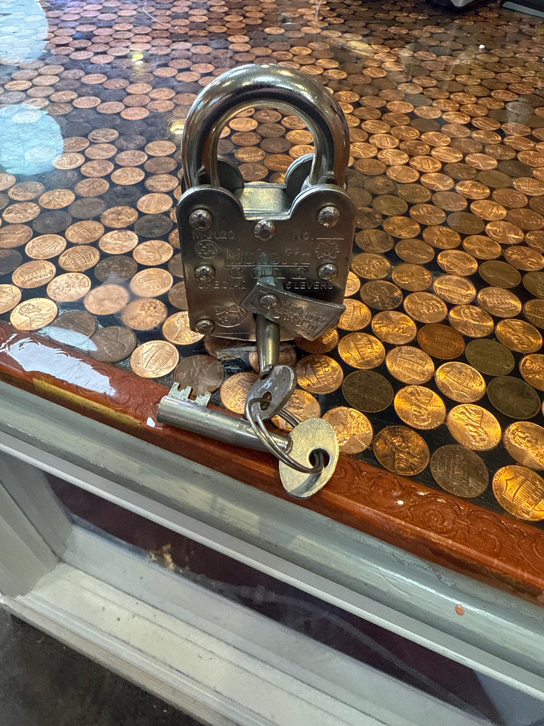 This is a nice looking iron pad lock with a levers system mechanism. Finely hand crafted in India and a nice shape in iron. Good working condition and a rich patina. As in most countries in Asia, padlocks were made according to the old, primitive artisan traditions until a bit into the 20th century. Locks were made by nomads, traveling locksmiths, and locksmiths working in small shops in the cities. Traditionally they sold their goods in bazaars or markets, and in many cases they made their locks on-site or nearby. They worked seated on the floor or the ground, with simple tools and no machines. The locks were made of brass, bronze or iron. After forging or casting, the surface was filed, sanded and polished, and possibly engraved for a relief effect. These are wonderful collections.