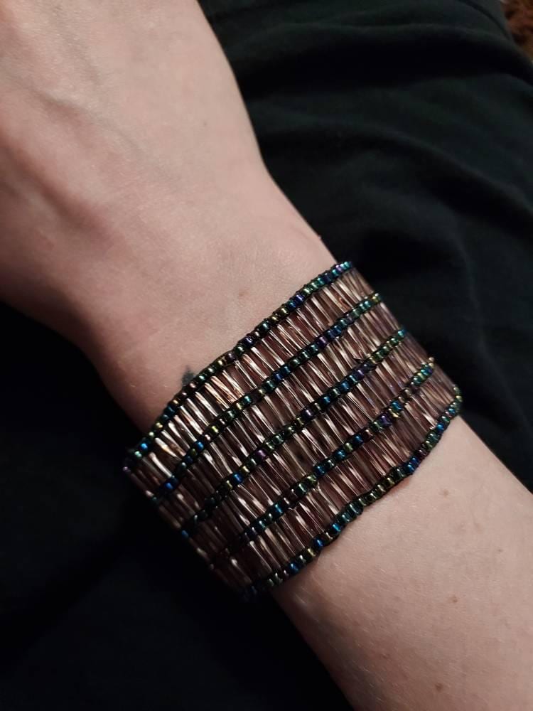 These are wonderful and beautifully Beaded India Stretch Cuff Bracelets. These bracelets are unique and created by small villages in India with the beauty of their local art and craft. These bracelets would make a wonderful gift for a young girl or women.
