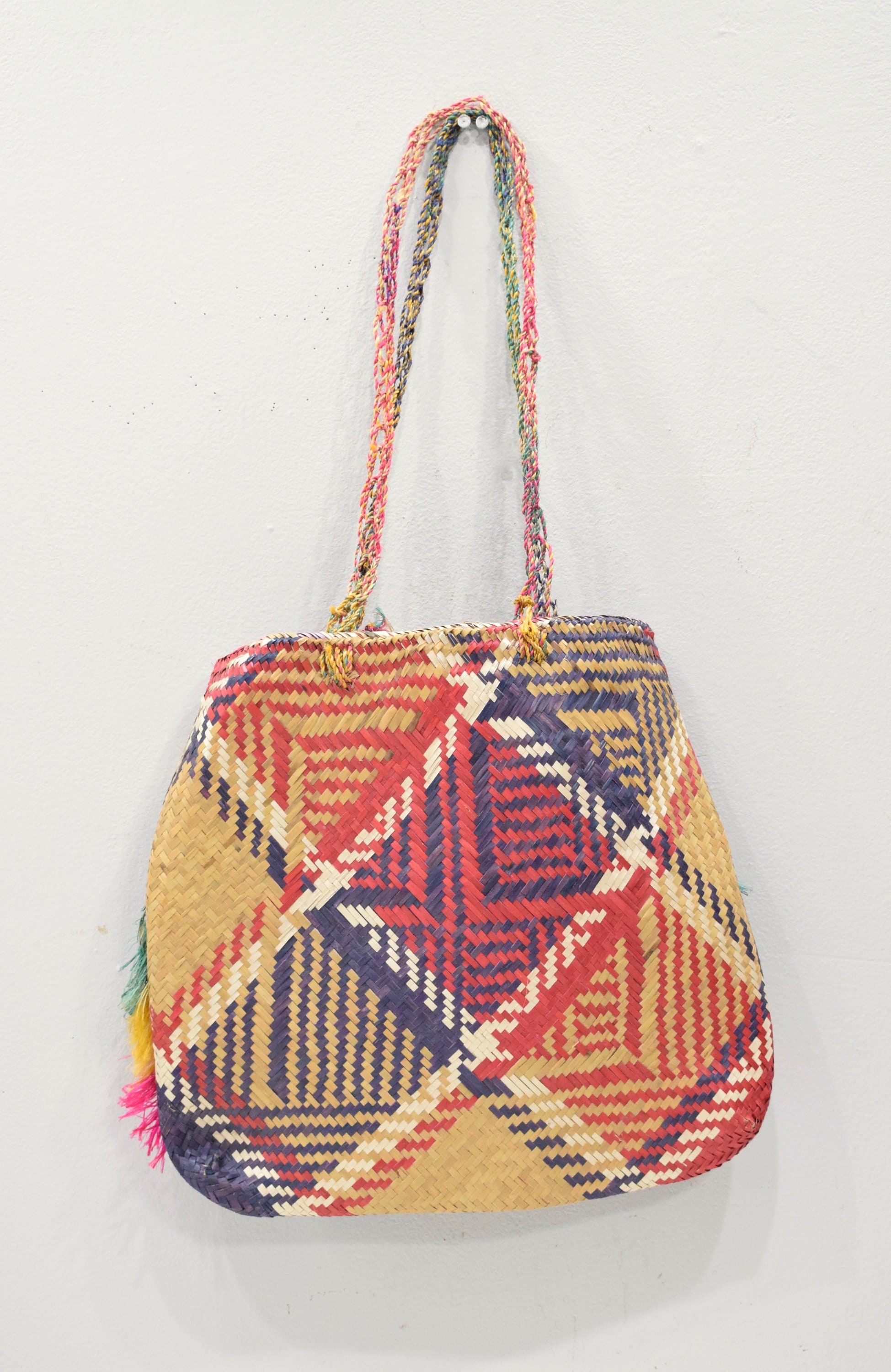 This is a woven Bag Papua New Guinea. Throughout New Guinea and West Papua fiber bags are essential companions to men, women, and children, protection, and fertility. The purses are made by women fibers formed into a strong two-ply string. How a bag is constructed depends on its purpose, and different looping techniques can indicate the intended use of a bag. They are also given as a Bride Price in initiating a clan marriage.